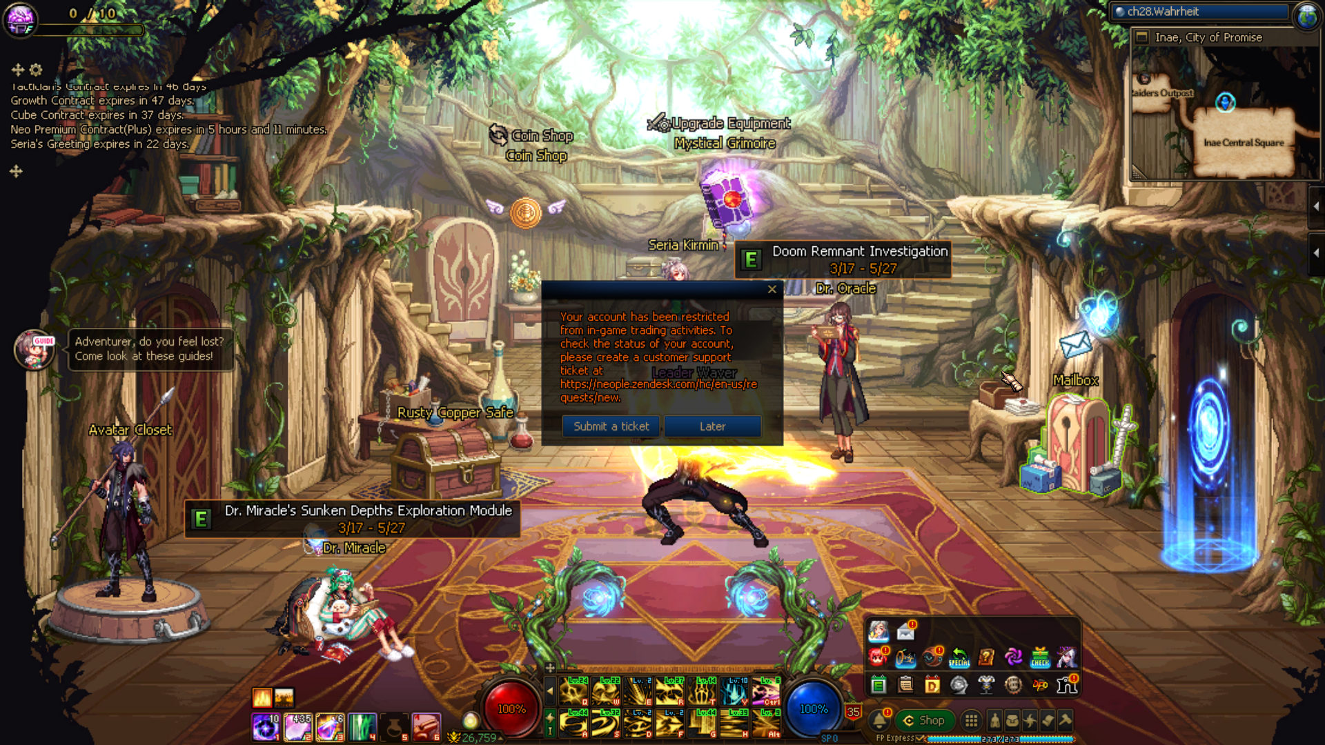 Now, all that said, i gotta talk about the negatives, because there are plenty. So much, in fact, that despite the fact that I just spent the last three paragraphs talking about how much fun I’m having, I actually wouldn’t recommend DFO to anyone right now, not unless they’re like me and “Beat-em-up MMO” scratches a deep itch in their mind. First off, the BS bot-detection system. This game has a very lazily-implemented anti-botting feature. It is so bad that it regularly flags new and returning players as bots, spamming them captcha. trade-banning them, and oftentimes banning them outright, forcing them to contact support, which leads to the 2nd problem - the Customer Support. The Customer Support will only ever give you automated replies. The people on the backedn will unban you/chill with the captcha, but they will only ever send back these replies that say stuff like “Next time, make sure you’re not running any 3rd-party software” or some other BS. They also do not work on weekends, so if you got banned on Friday, you are shit out of luck until Monday. Next problem - the current economy. This one requires some context. DFO is a free-to-play game. It makes money by selling cosmetics and premium items/equipment. It also has in-game systems that are very taxing on someone’s gold supply if they’re trying to max things out. So what happens is that people buy packages, and because the package contents are tradable, they sell them on the in-game auction house for large amounts of in-game gold. This is how F2P and low-spenders like myself can get Avatars and creatures outside of events; you save up gold, and buy it off someone selling it to fund their gearing min-maxing. During the previous level-cap, there was a rather lucrative place to farm gold. It was a great time for people with lots of alts; they could stockpile some gold and get some premium items without having to break the bank. This current level cap has a nice “premium” gold dungeon that requires a ticket from a randomly occuring shop to enter, but the normal gold farming dungeon is absolutely horrid. You can burn an entire FP bar on it and walk away with only 400K gold. For context, one run of that premium dungeon nets you around 200k, and a lot fo things worth buying in the Auction house are in the millions. It’s a rough time if you didn’t already have a lot of gold, so it’s hard for people, especially new and returning players, to get up and running without events handing them a lot of the stuff they’d have to spend gold on, and even then, repair costs pile up quickly. I currently don’t deal with repair costs, but that’s because this game’s shitty anti-bot tech forces em to run most content without my weapon equipped, so I rarely ever have to repair my things. lastly, the RNG - this cap’s method of gearing is running the Disciple of Doom dungeon, which will randomly drop gear of 12 different sets at varying rarities. There is no guarantee anywhere that you will get a certain piece of a certain set at any time. Basically, think of a Hoyo game, but instead of bitching about substats, we’re bitching about rarity and slot. There is a sort of “pity” dungeon that you can access after enough runs, but again, it does not guarantee any specific piece of rarity; you will either get some pieces of the sets you chose at random or a bunch of souls. The non-rng ways to get progress are few and most are expensive. You can brute-force your way to a certain set by tuning, but it costs a large amount of souls,which you get from dissambling gear, and gold. You can purchase pots of certain rarities to get a random piece from a set; they’re very good, but you are limited to buying them monthly. There is also the Infinite Florescence dungeon, which reguarly drops pots for its unique set. This set isn’t super crazy, but you get it from just running the dungeon. The catch is that you can only run this dungeon 4 times a week unless you’re lucky and catch a secret shop to buy another entry ticket. Finally, there is the Mu weapon. Rember the Mu raid I mentioned earlier? Run this enough times and you can turn a lvl 110 weapon into a Mu Weapon, an enhanced weapon with special effects and a lot of stats. It’s outclassed by Epic and Primeval weapons of this cap, but is still a powerful and non-rng gaited option. I’m personally going to put my older characters on Mu weapons since they’re already using older weapons. I’m also going to get my Dragoon one, since he’s been stuck on his legendary weapon for about two months now, and crafting a Mu weapon is cheaper than tuning the weapon.