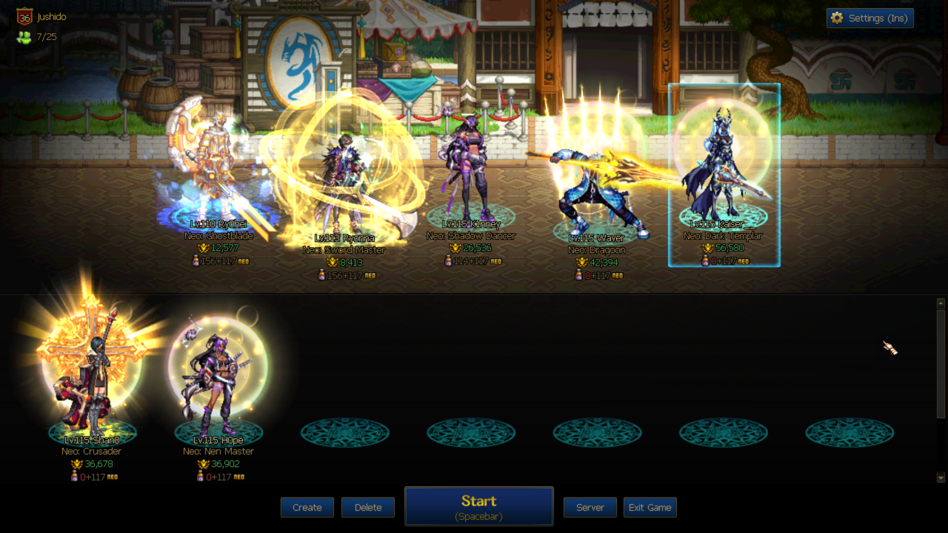 The gameplay in DFO is still great. I love beat-em-ups, so a MMO with beat-em-up gameplay is an easy sell even without all the great music and fighting-game references. The game had some Boost events going on when I came back, allowing me to make new characters and immediately get them to max level with some basic, and I do mean basic, gear equipped. I made a Dragoon, a Dark Templar, a Muse who I deleted after I triggered Captcha while trying to learn her, and Female Crusader, and a Female Nen Master. I had a Dragoon and a Dark Templar on my OG account, so getting them up and running on my steam account felt good, and they’re currently my strongest characters. The Muse, and later Crusader, was me finally trying a buffer class. Endgame dungeons are done in parties, and the enemies’ HP assumes that you are in a 4-man party with a buffer. Buffers give amazing boosts of power and keep the party alive during tough fights. It’s objectively a good thing to have one in your back pocket, even as an alt. They are also given very silly buffs for solo play, so they are unironically the comfiest characters you can play solo. I made F Nen because I picked her up in DNF Duel recently and she’s been a lot of fun. That carries over here, too. I love playing her. I do eventually want to circle back and get my older characters up and running. They already have gear for the most part; I just have to level them and get them some budget gear so they can run some advanced dungeons.