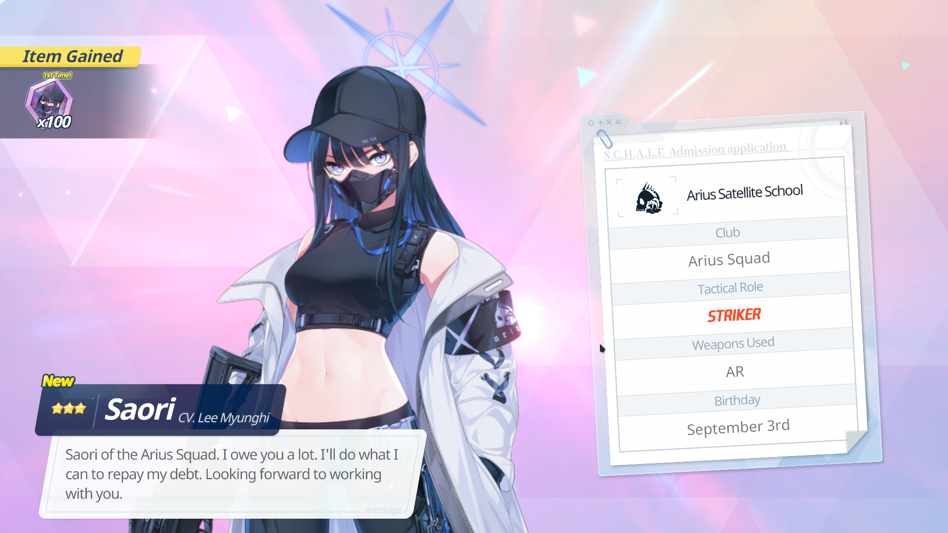 As far as the gacha is concerned, it’s more akin to something like GBF than a Hoyo game. There is a counter up to 200, and it goes up every time you roll. If you get to 200, you can get any of the on-banner units. What separates this from something like Hoyoverse pity is that you can do this regardless of whether you got the unit already or not. For example, I had to use this to get Saori. I did 200 pulls and didn’t get her, so I relied on this to get her. However, even if I did get her, I’d still be able to trade that in and either get a dupe of her or get one of the other rate-up characters. I hate losing 50/50s with all my heart and soul, so I’ll take this, honestly. More highroll potential, too. The game has been kind to me on this front, can’t lie. Got Rio and a dupe of her, plus Dress and normal Saori. Feeling good about myself. Feeling very good.