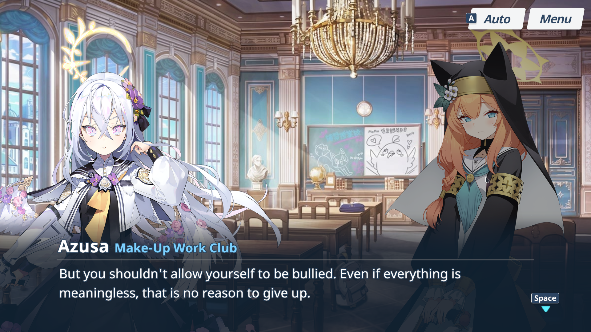 The game’s been very pleasant. The story is very good; It’s sold me on every group that’s been focused on so far. I love these misfits. Standouts for me so far are definitely Serika, Azusa, and Momoi; I’d go to war for these girls, man. It’s a bit weird to describe, but the premise of the story is that you, the player character, go around this state-school place called Kivotoes and help students in trouble. It can get kinda heavy; this game definitely went places I didn’t expect it go going off the expectations I built in my head from the fanart. Still, Blue Archive is a hopeful story. They wanna get you and the girls outta there with a bow and a smile, and they’ve been really good about setting up payoff so far.