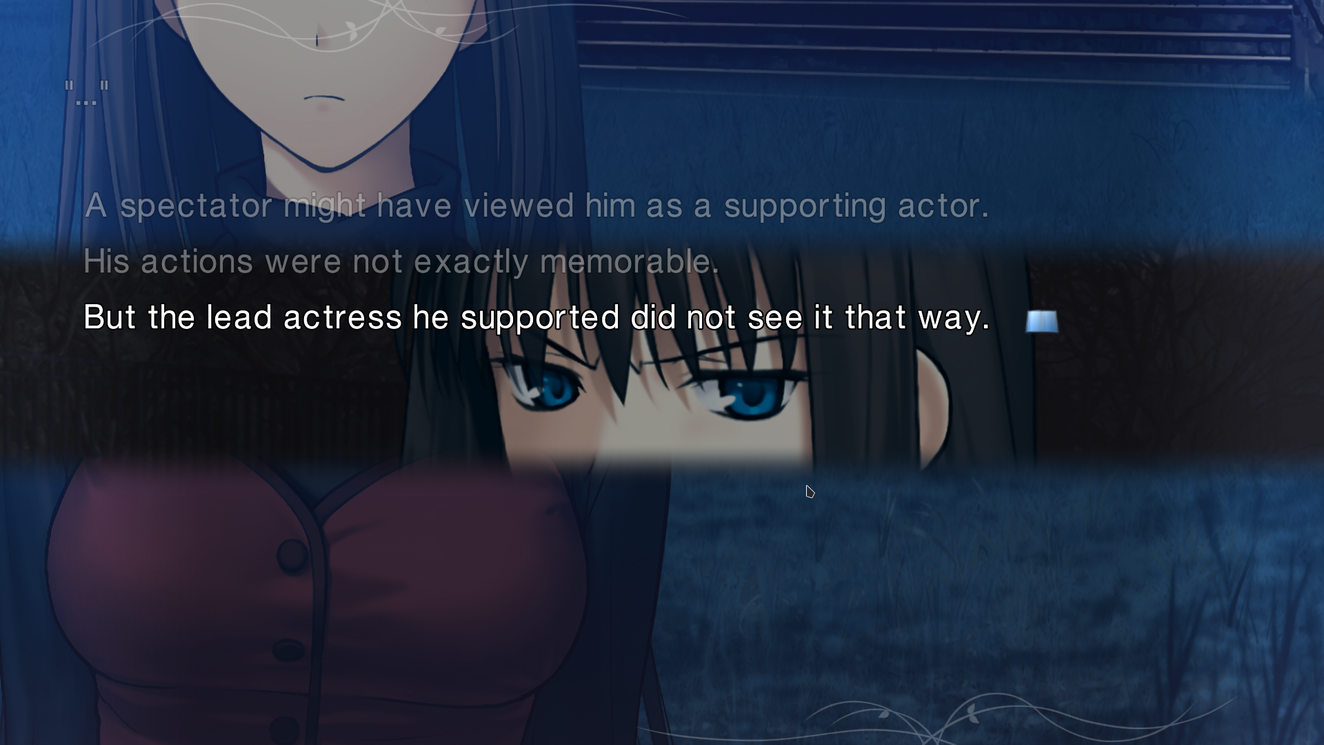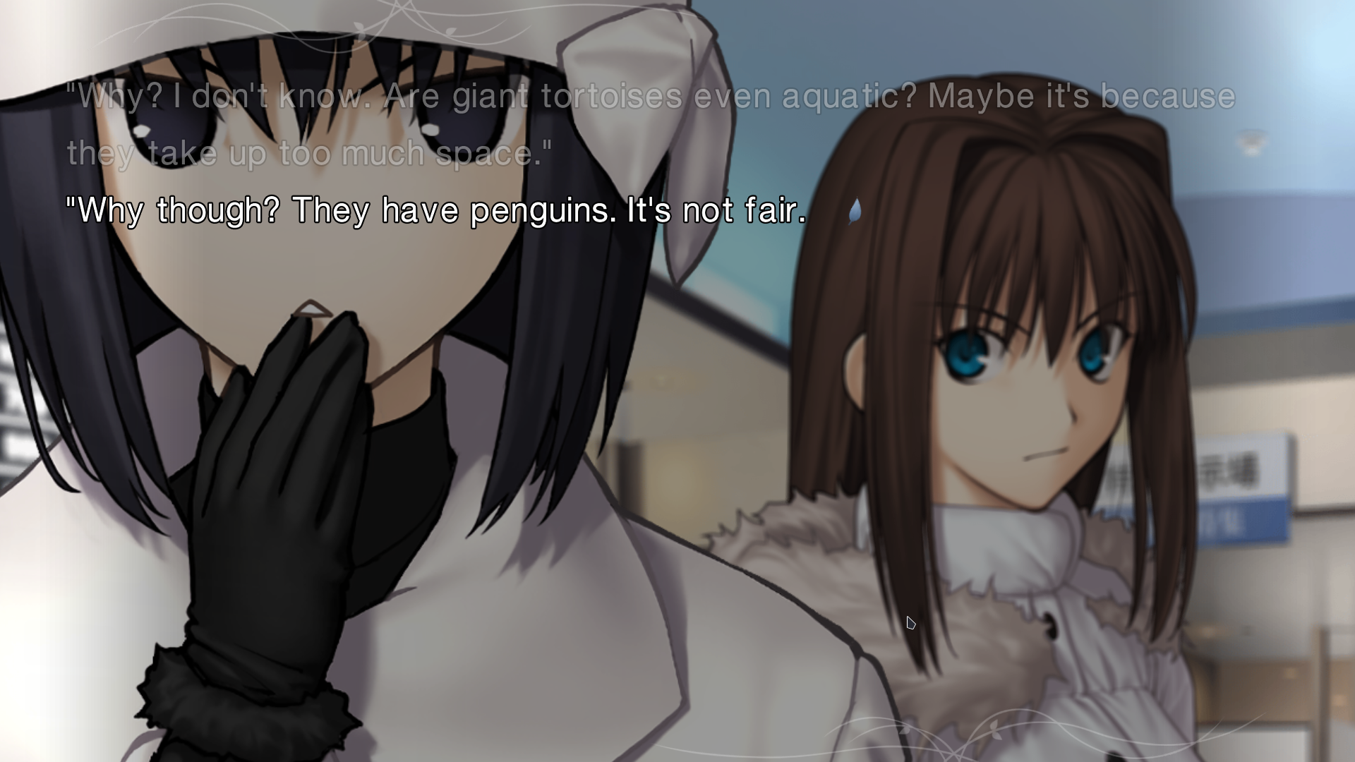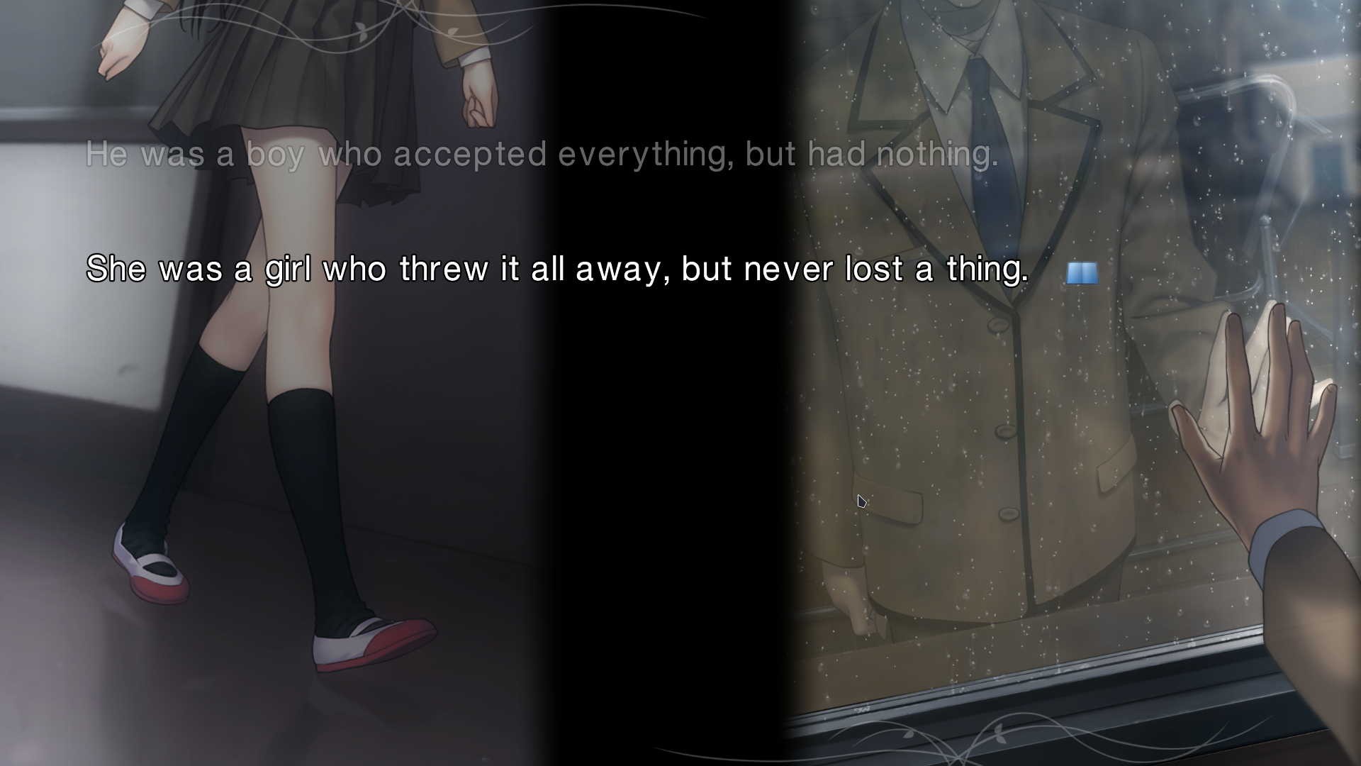 The story’s very good and presented so well. It feels unfair to compare the VNs I have played to this game because the presentation is just off the charts, man. Talk about production value. I was not joking earler when I called this a cinematic book reading, mane. And I don’t wanna talk too much about the story because that’s the whole point of reading it, but I do wanna say it’s fun adventure with a lot of magic bullshit and a lot of good character work. It’s also just pretty damn funny. You should come out of this with a smile on your face if you try it, and I think you should. Game’s cool, and I’ll try to revisit it when I’ve had enough time away from it. In the meantime, I think I’ll go read OG Tsukihime .